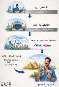عندما يضغط عميل في دبي زر التحويل بالدولار إلى القاهرة، لا تسافر أمواله مباشرة إلى وجهتها، بل تعبر أولاً نيويورك، حتى وإن لم تكن الولايات المتحدة طرفاً في الصفقة.